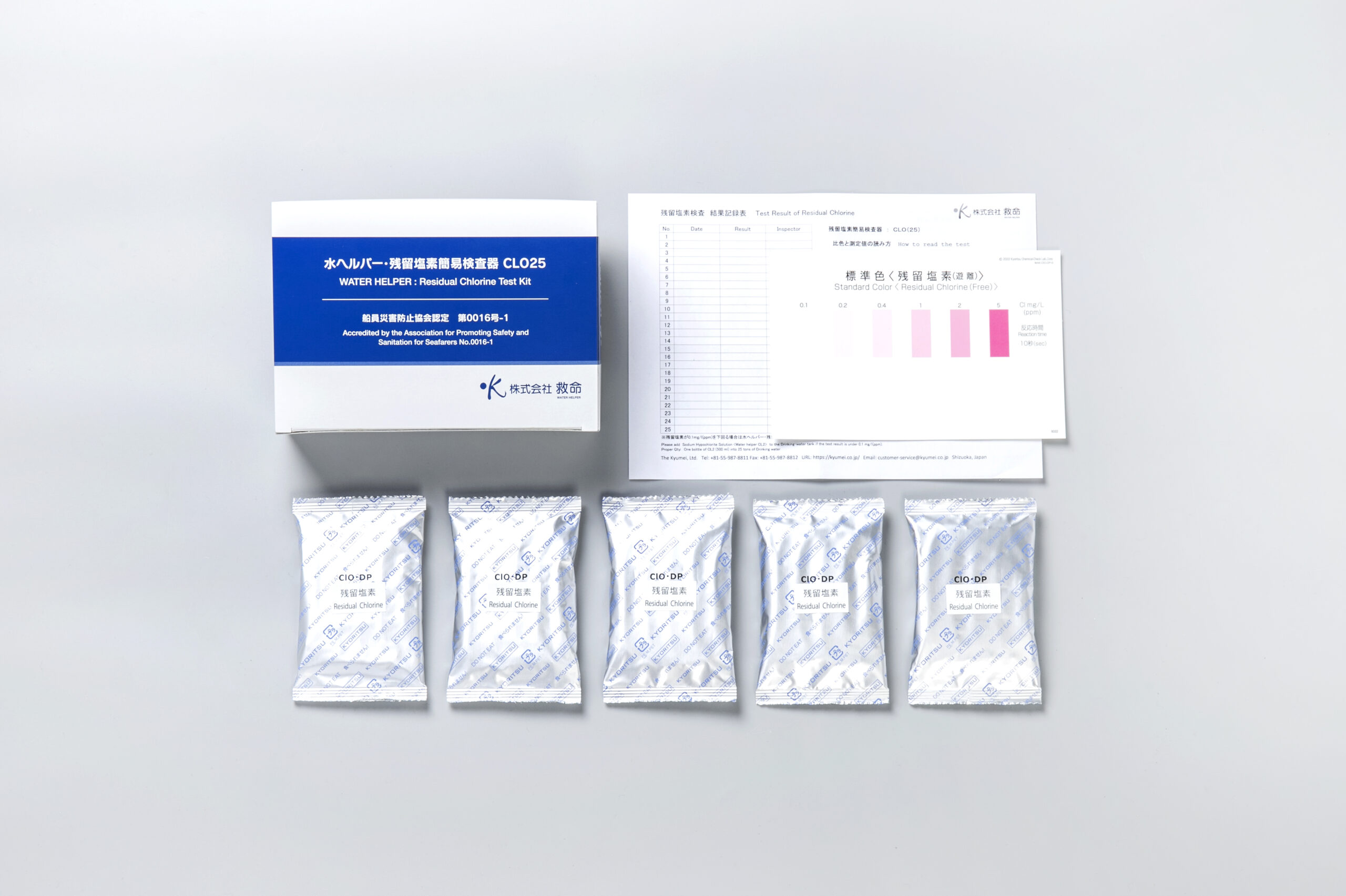 残留塩素簡易検査器 CLO25 は、船舶向けの水質管理に最適な残留塩素検査キットで、遊離残留塩素の簡単なテストが誰でもできる仕様です。25回分がセットされ、日本の船員労働安全衛生規則で義務付けられた月1回以上の検査にも対応します。不合格時は次亜塩素酸ナトリウム溶液での調整が可能で、有効期限は出荷日から2年。型式は数量の違いのみで、世界中の船舶でも使用でき、必要に応じて英語SDSの提供やバラ売りも対応しています。